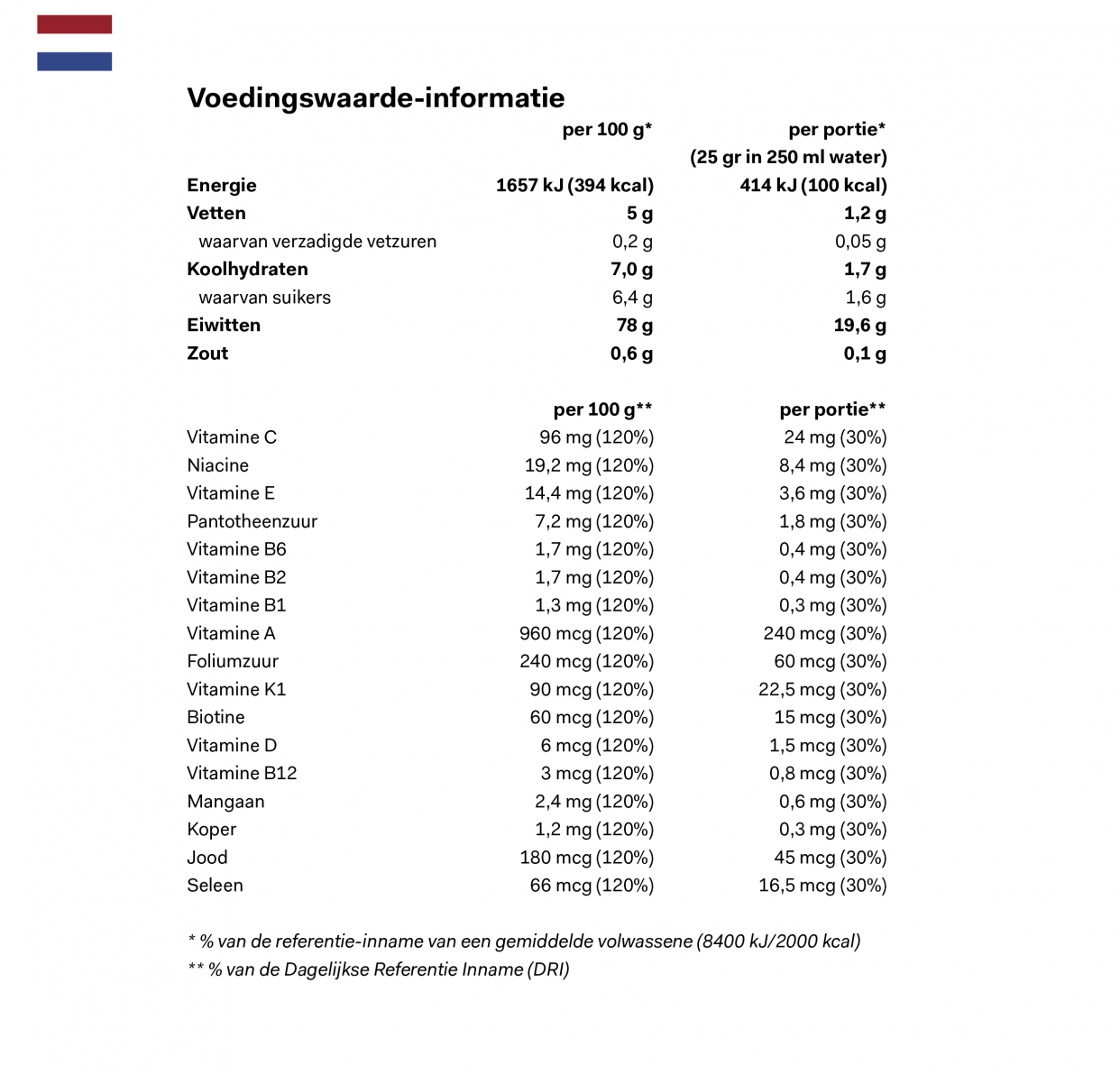 Our Whey Protein Shake comes in different flavours. Because tastes differ. This shake is ideal for athletes. Take Whey Protein before and/or after training. The high-quality protein is absorbed into your body within 20 minutes. This ensures maintenance and recovery of muscles, as well as building extra muscle.
